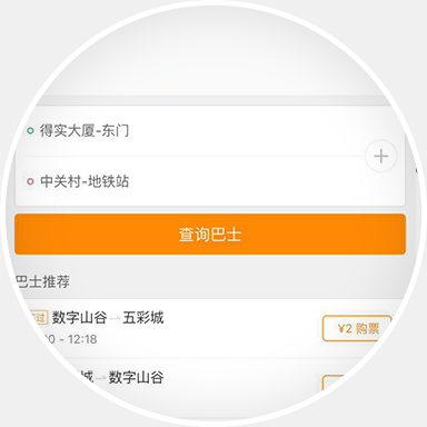 系统会根据您最近的查找/购买记录,在“公交”界面首页推荐您可能希望乘坐的路线,方便您更快捷的完成购票。
