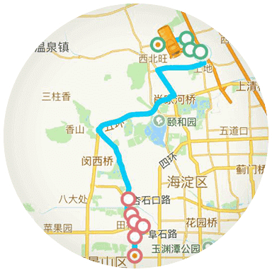 如果对线路还有疑惑,可在行程卡片中点击站点名称查看实景图,您可根据地图上的连线找到离您最近的上车地点。