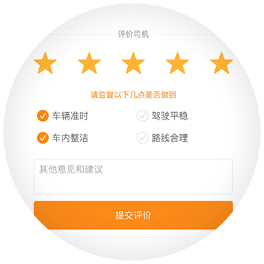 下车前,请对本班次进行评价,如遇到让您不满意的情况时,请在评价中给予意见和建议,我们会及时改进。