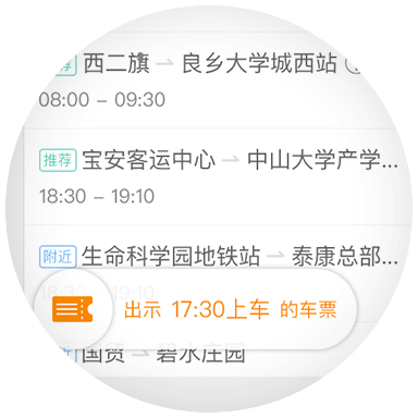 购票成功后,可点击巴士界面左下角“车票图标”查看已购巴士车票。